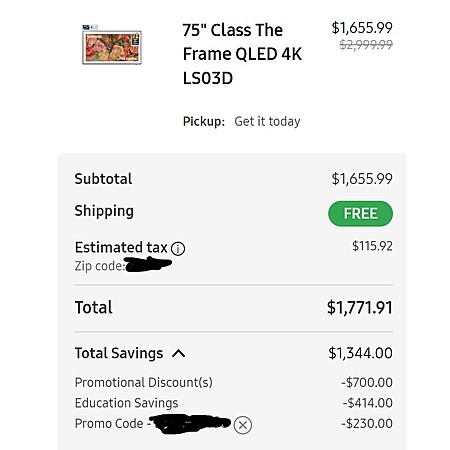 Samsung Frame TV 75" (4K LS03D) - EPP/EDU + chat $1655.99