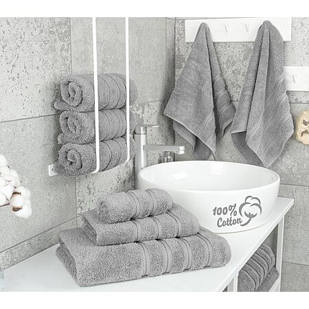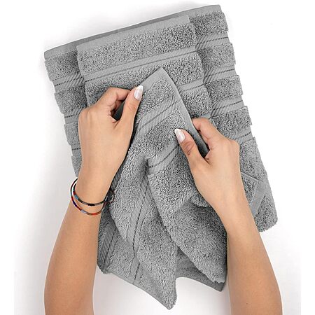 Model: American Soft Linen Luxury 6 Piece Towel Set, 2 Bath Towels 2 Hand Towels 2 Washcloths, 100% Cotton Turkish Towels for Bathroom, Light Grey Towel Sets