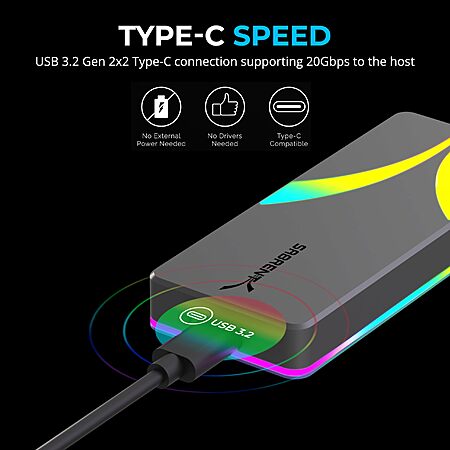 SABRENT Rocket RGB USB C 20Gbps M.2 SATA/NVMe SSD Enclosure