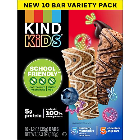 Model: KIND Kids Snack Bars Variety Pack, Tree Nut Free, Peanut Free, Gluten Free, Made With Whole Grain Oats, 12.3 oz Boxes (10 Bars)