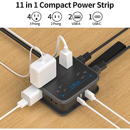 NTONPOWER Flat Plug Power Strip (8 outlets, 2 USB-A, 1 USB-C) - $10.75 w/ 30% Coupon