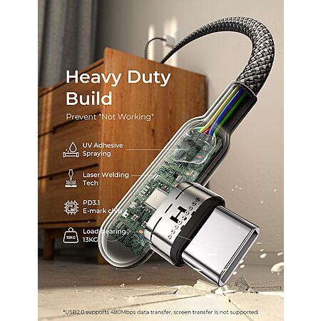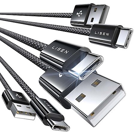 Prime Members: LISEN 2-Pk 240W USB-C to USB-C Cable + 3-Pk USB-A to USB-C Cable