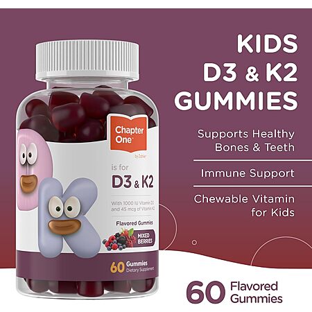 60-Count Chapter One 1,000 IU D3 & 45 MCG K2 Vitamin Gummies (Mixed Berries) on sale for $9.95 - 50% Off when you click 'Redeem' on the product page or apply promo code on the