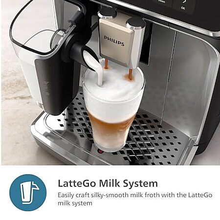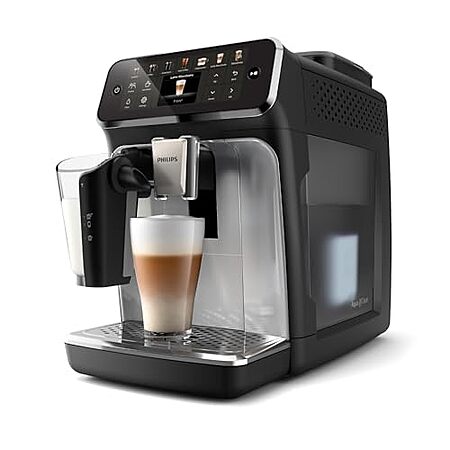 Model: PHILIPS Series 4400 Fully Automatic LatteGo Espresso Machine, SilentBrew Technology, Quick Start. Aromatic Coffee from Freshly Ground Beans, 12 Hot and Iced Drinks, Black Chrome (EP4444/90)