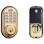 $28*: Yale Security Electronic Push Button Deadbolt w/ Zwave Technology (Brass) at Woot!