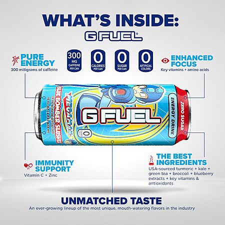- MAKE THE SWITCH TO CLEAN ENERGY: Whether it's for gaming, work, school, your workout, or daily pick-me-up, G Fuel's antioxidant-rich, focus-enhancing zero sugar energy drinks will give you the edge you need to power through your grind! Use our energy beverage as a pre gaming drink, pre workout, coffee or soda alternative, and for much more!