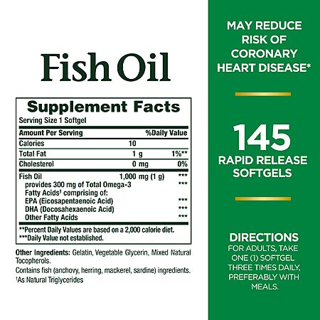 145ct Nature's Bounty 1000mg Fish Oil Rapid Release Softgels
