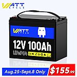 WattCycle 12v 100ah Lifepo4 Battery $124.97
