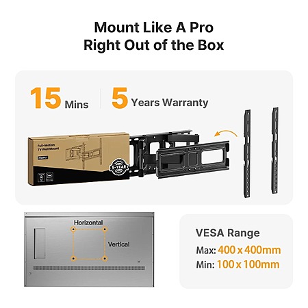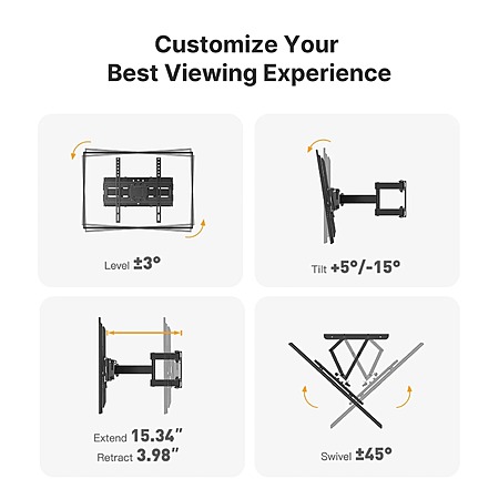 Full Motion TV Mount for 26-70 inch TVs with Swivel Tilt Extension Leveling $23 + Free Shipping w/Walmart+ or $35+