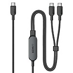The Anker 2-in-1 USB-C to USB-C Cable offers fast charging and convenience with its versatile design, compatible with smartphones, tablets, and laptops. With 140W max charging power, it can supercharge a 16-inch MacBook Pro to 50% in just 20 minutes. The cable's smart power management optimizes charging efficiency across multiple devices, making it ideal for travel and reducing clutter. Built for durability, the 4 ft braided cable includes a flexible 3 ft base and two 1 ft adjustable sections with over 10,000 bend resistance. It comes with an 18-month warranty and customer support.