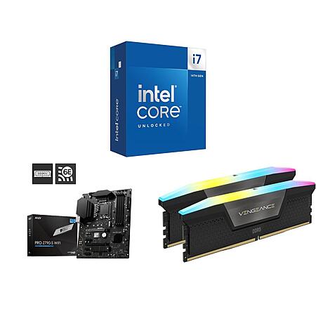 Intel Core i7-14700K + MSI PRO Z790-S WIFI LGA 1700 ATX Motherboard + CORSAIR Vengeance RGB 32GB (2 x 16GB) DDR5 6400 Desktop Memory $490.99