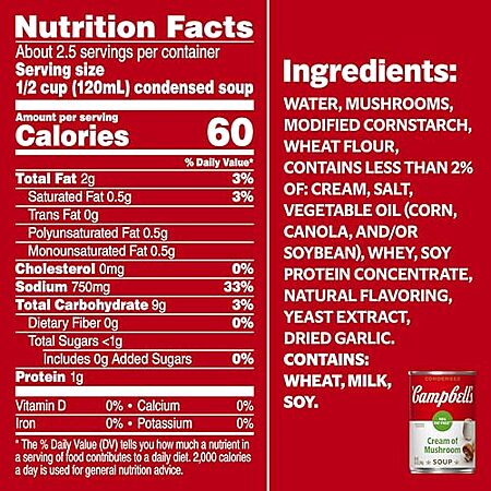 $5.90: 12-Pack 10.5-Oz Campbell's Condensed Soup (98% Fat Free Cream of Mushroom) at Amazon (49.2¢ each)