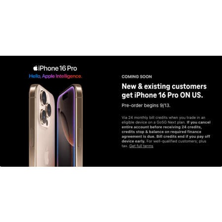 Coming soon...New & existing customers get iPhone 16 Pro ON US. Pre-order begins 9/13.