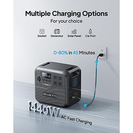 [Charged in 1 Hour] - The AC180 packs a 1152Wh LiFePO4 battery, which can be fully charged in just 1 hour at 1440W AC input - always ready to go when you need it.