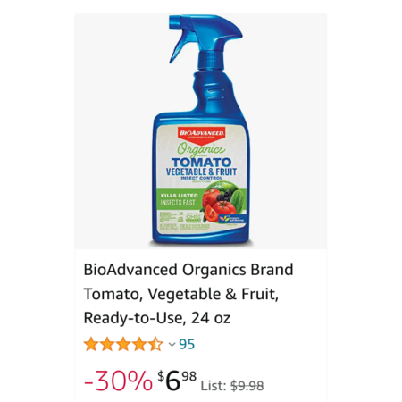 24 oz. BioAdvanced Organics Brand Tomato, Vegetable & Fruit Insect Control $5 + Free Ship w/Prime or on orders $35+