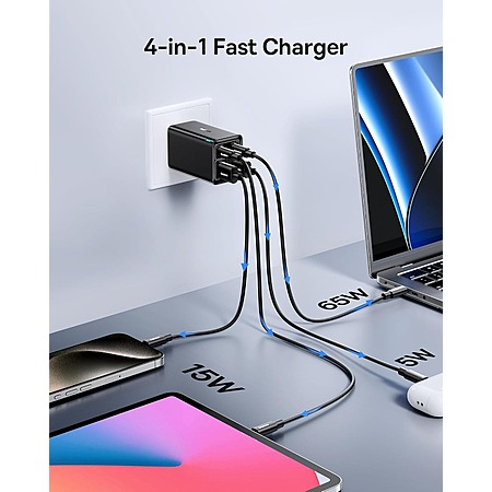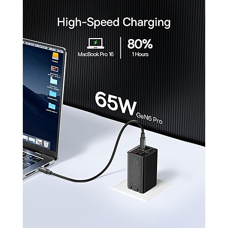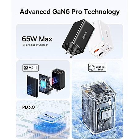 Baseus 65W 4-Port GaN6 Pro Fast Charger Block (2x USB A + 2x USB C)