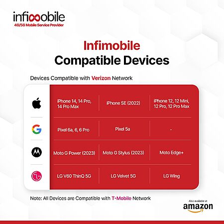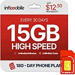 $10/Month | Infimobile Prepaid Unlimited Plan: 12 Months | 15GB High-Speed Data Per Month | Unlimited Data Talk & Text | T-Mobile/Verizon Networks $120