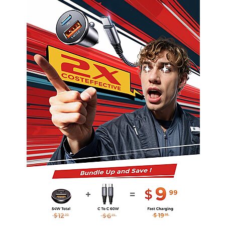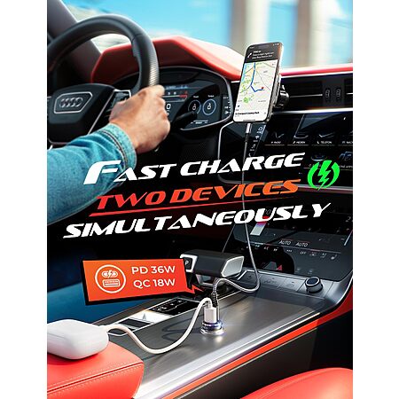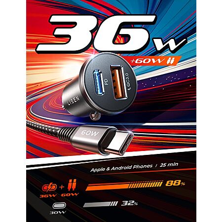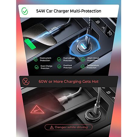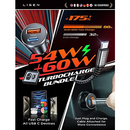 LISEN 54W Dual Ports USB C Car Charger for iPhone 16/15 with Cable Fast Charging $7.49 + Free Shipping w/ Prime or $35+
