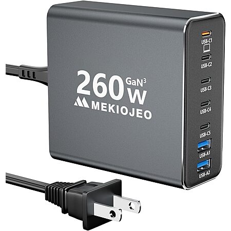 Prime Members: MEKIOJEO 260W 7-Port USB-C GaN 3 Aluminum Alloy Wall Charger on sale for $34.99 - 25% when you 'clip' the coupon on the product page =