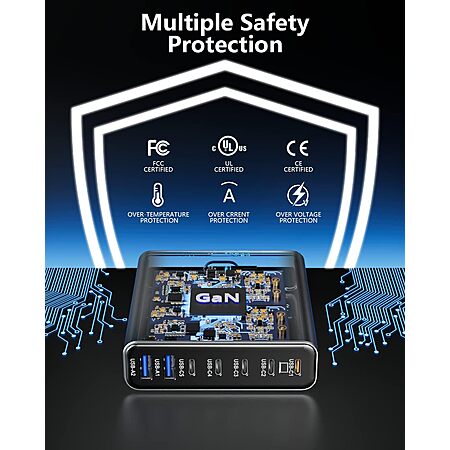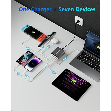 - 7-in-1 USB C Charger: provides 7 charging wattage options with 5 USB-C ports and 2 USB-A ports. Total output up to 260W.