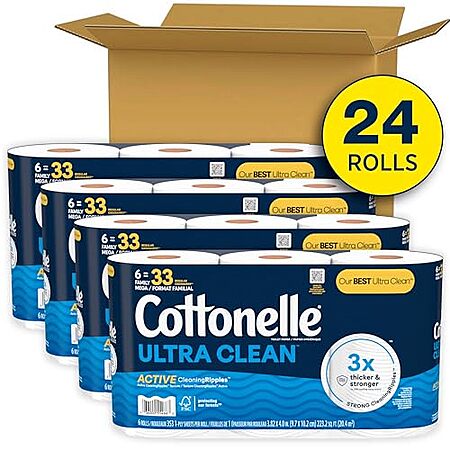 24-Pack 353-Sheets Cottonelle Ultra Clean Toilet Paper (Family Mega Rolls) for $27.59 - 20% when you 'clip' the coupon on product page - 5% when you check out via Subscribe & Save =