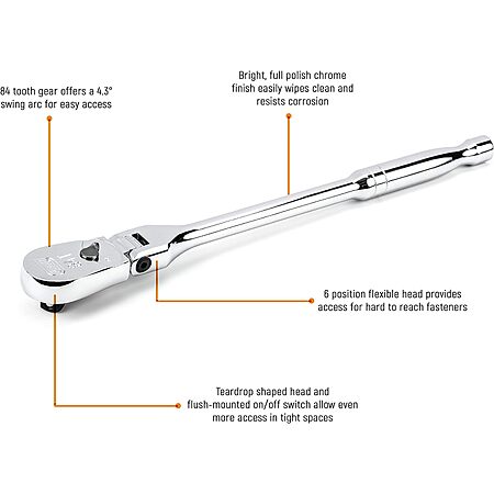 17" GEARWRENCH 1/2" Drive 84 Tooth Flex Head Teardrop Ratchet (81306A-07) on sale for