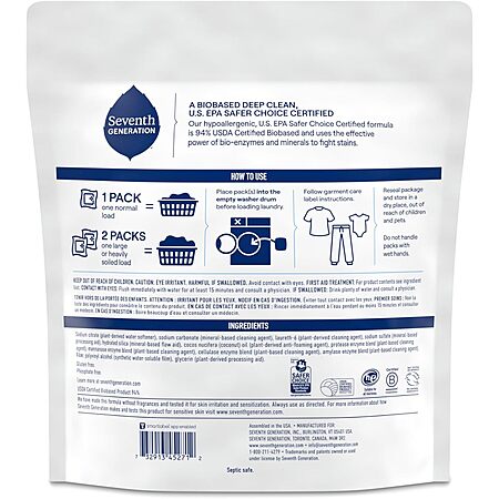 64-Count Seventh Generation Laundry Detergent Packs (Free & Clear) for $17.91 -