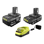 RYOBI ONE+ 18V Lithium-Ion Starter Kit with 2.0 Ah Battery, 4.0 Ah Battery, and Charger PSK106SB - $79
