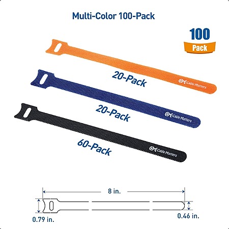 100-Count 8" Cable Matters Hook and Loop Reusable Cable Ties (Multicolor) $6.99 + Free Shipping w/ Prime or $35+ orders