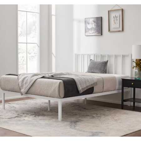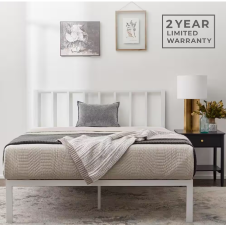 White Metal Platform Bed Frame w/ Wood Slats & Headboard King $88.08, Queen $112.57 & More + Free Shipping