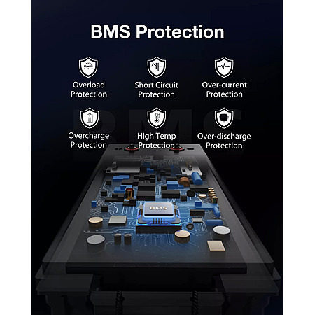 - Built-in 200A BMS, protect it from overcharge, over-discharge, charge over-current, discharge over-current, short-circuit, cell voltage self balance, high-temp discharge cut off