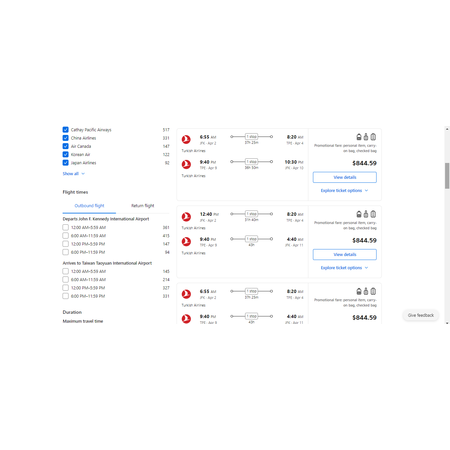 Turkish Airlines via Booking.com have round trip airfares travelling from New York (JFK) to Taipei Taiwan (TPE) for $845 making 1 stop in Istanbul, both ways. There are many flight times to choose from so your stopover duration will depend on the flight you choose. This promotional airfare is in economy and includes a personal item, a carry-on bag and 2 free checked bags.
