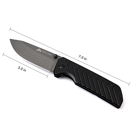 - 7" Folding Knife with 3" 420 Stainless Blade, Thumb Stud and Pocket Clip (Gray Titanium Blade / Black Handle)