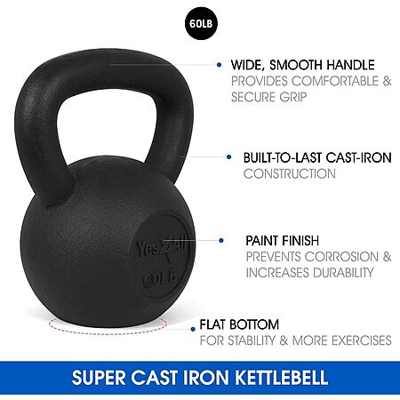 60-Lb Yes4All Cast Iron Kettlebell $32.99 + Free S&H w/ Prime or $35+