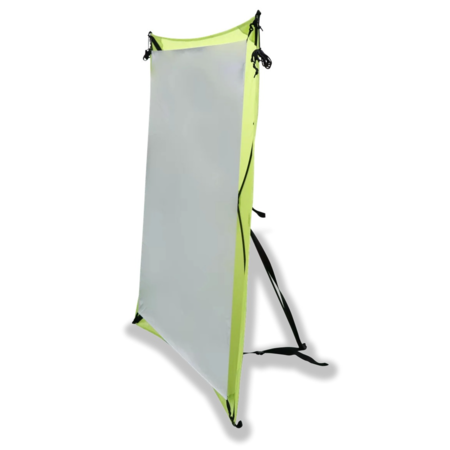 The screen is badly creased where it was folded and crumpled where it was tied to the folded poles. Maybe I need a steamer.