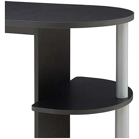 Classic black finish coordinates with a wide range of color palettes and decor styles and the simple curved lines of the additional shelves add a little uniqueness to the desk