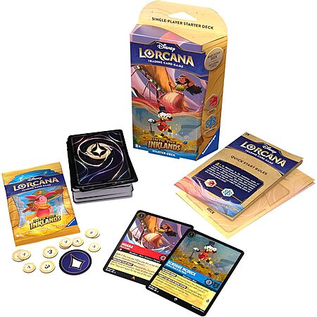 - Each deck contains 60 cards (including 2 foiled), 11 tokens, 1 Rules sheet, and an extra bonus pack of 12 randomized cards- Everything you need to start your Lorcana adventure