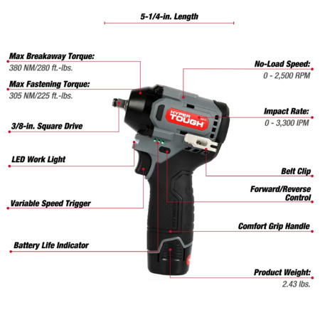 Torque Test Channel on Youtube tested this and it did rather poorly, but I have one and have to disagree somewhat. While you really do need the 4 ah battery (these seem to be very inconsistent across the board - tests disagree on the max torque and whether or not it works meaningfully with the 2 ah battery), it makes a great little impact for smaller tasks without rounding things off or stripping things out. Think most top-of-engine work, belly pan bolts, interior fasteners, etc. Shares the M12 form factor, and has a similar amount of real power to some of its competitors (Skil 12v 3/8, Bauer 3/8 with a 1.5 ah battery, 1st gen Ridgid Subcompact, etc).
