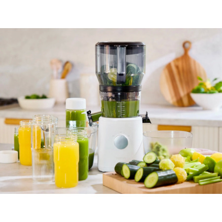 Why is the J2 different than other juicers? it has a 3 liter hopper you can load up with fruits and vegetables, turn the machine on and walk away. When you come back in a few minutes later, you have a 1-1.5 quarts of juice ready for you to drink, without having to push all the produce into the juicer like you do with other machines.