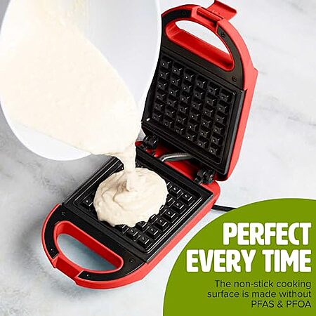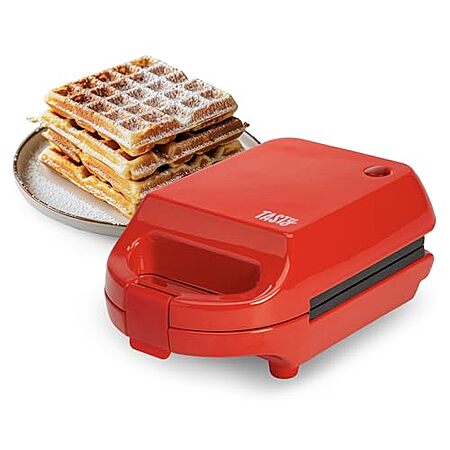 Model: Tasty Mini Nonstick Waffle Maker, Perfect for Individual Waffles, Hash Browns, Brownies and more, Quick Results, Easy Clean Up, 600W, Red