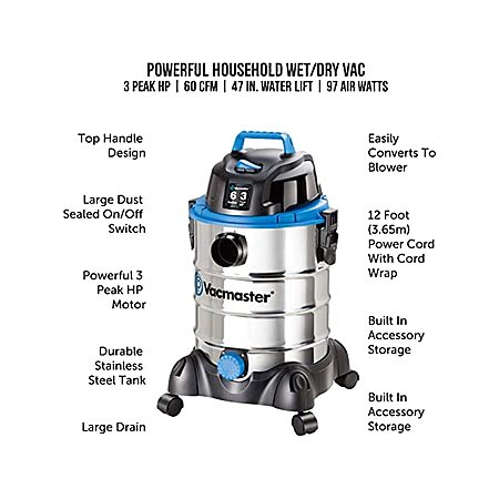6-Gallon 3 Peak Vacmaster VQ607SFD Stainless Wet/Dry Corded Shop Vacuum $60, 24V Sun Joe V37928 Cordless Wet/ Dry Shop Vacuum (Tool Only) $55 + Free Shipping w/ Prime