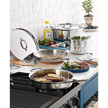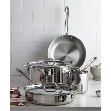 Macy's has 7-Piece All-Clad 3-Ply D3 Stainless Steel Cookware Set on sale for $299.99. Shipping is free or select free store pickup where available.