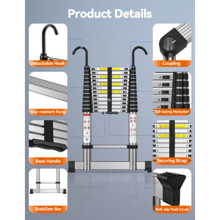 Regarding this exact one, the hook concept looks cool but I am skeptical how useful it is real world as you normally over extend a ladder past what you are accessing, not hang it. You are asking for a hospital trip hanging a ladder off gutters assembled with tiny sheet metal screws. At least the hooks are detachable. The bar thingy at the bottom seems like a terrible concept unless the ladder was perfectly flush against a flat surface....not likely in outdoor use or when climbing anything at an angle against the ground / grade.