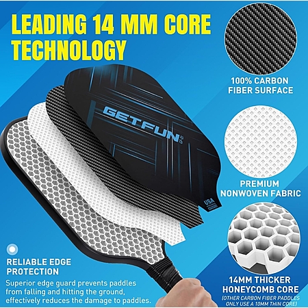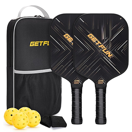 GETFUN Pickleball Set w/ 2 Paddles, 4 Balls & Carry Case (Carbon or Fiberglass)