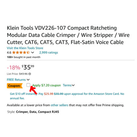 Klein Tools VDV226-110 (pass-through) and Klein Tools J2000-48 both have coupons as well