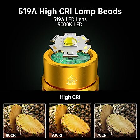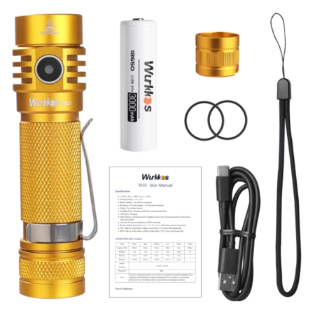 Wurkkos WK03 Flashlight on Amazon, Black or Golden, Rechargeable, 1200 High Lumens LED, High CRI 519A LED, IP68 Waterproof $17.99