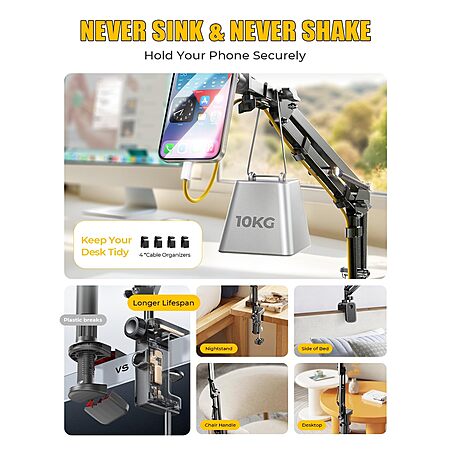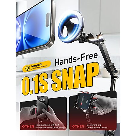 LISEN Gooseneck Phone Holder for Bed Magsafe Phone Stand for iPhone 16 15 Stand Holder for Desk Magnetic Phone $14.99