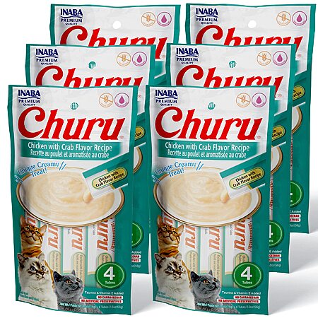 INABA Churu Lickable Cat Treats, Chicken with Crab Recipe, Grain Free, Squeezable Purée with Vitamin E & Taurine, 24 Tubes (4 Packs) [Subscribe & Save] $15.77