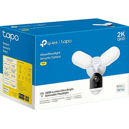 TP-Link Tapo Wired Floodlight Wi-Fi Security 2K Camera with Utra-Bright Dimmable Floodlights No Monthly Fees White TC55 - Best Buy $99.99