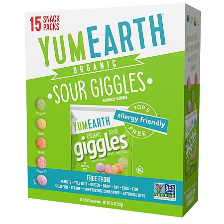 15-Pack YumEarth Organic Sour Giggles Chewy Candy $7.17 w/ S&S + Free Shipping w/ Prime or on $35+